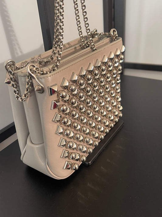 Pe-Owned Christian Louboutin Grey Triloubi Shoulder Bag with Classic Design