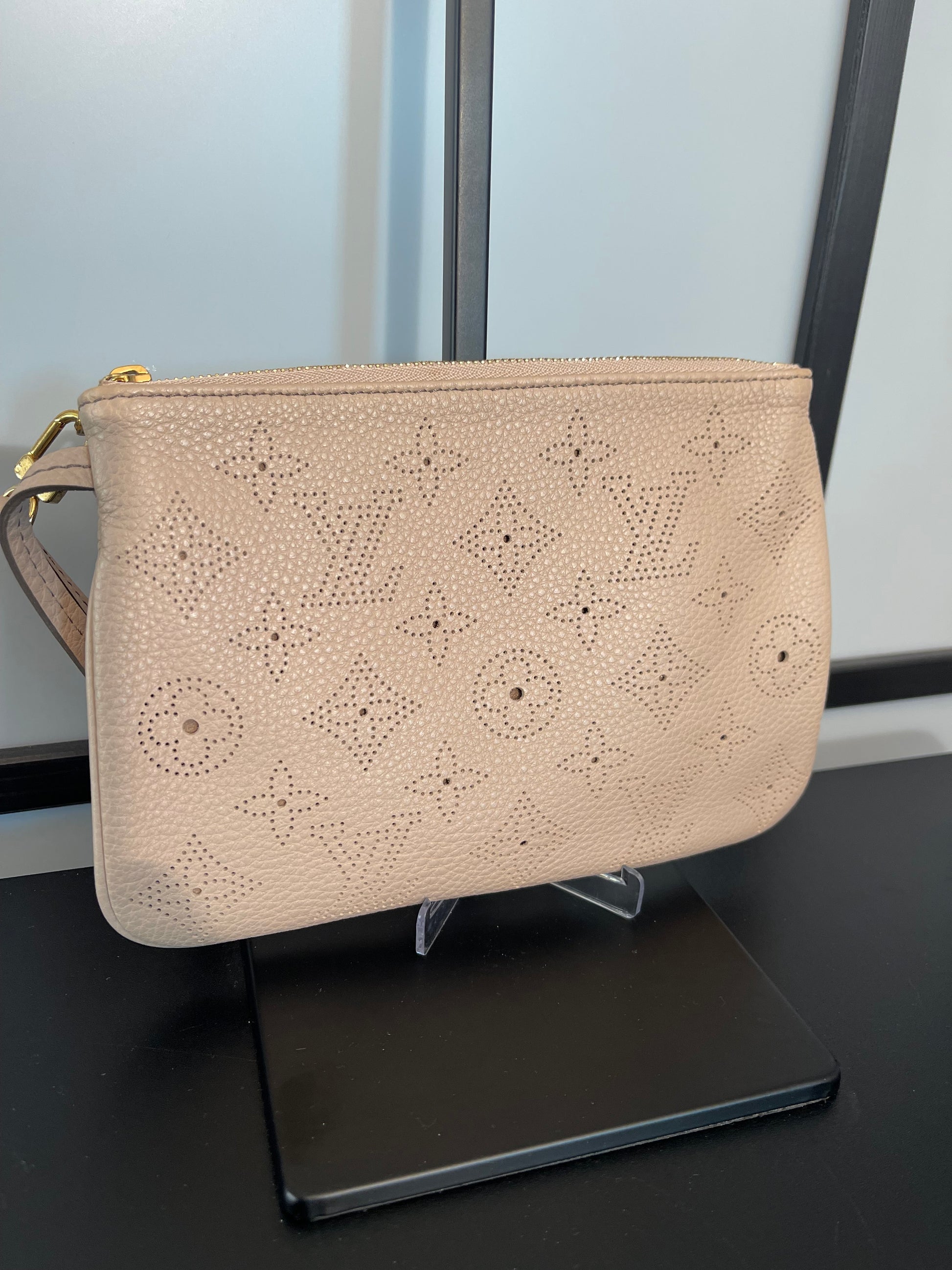 Elevate your accessories collection with this authentic Pre-Owned Louis Vuitton Mahina Wristlet PM. Crafted from Louis Vuitton's signature perforated Mahina leather, this compact wristlet combines sophisticated design with practical functionality. The PM size offers ample space for essentials while maintaining an elegant silhouette. Perfect for evening events or as a luxurious everyday companion, this timeless piece showcases the impeccable craftsmanship and attention to detail that defines the Louis Vuitton heritage.